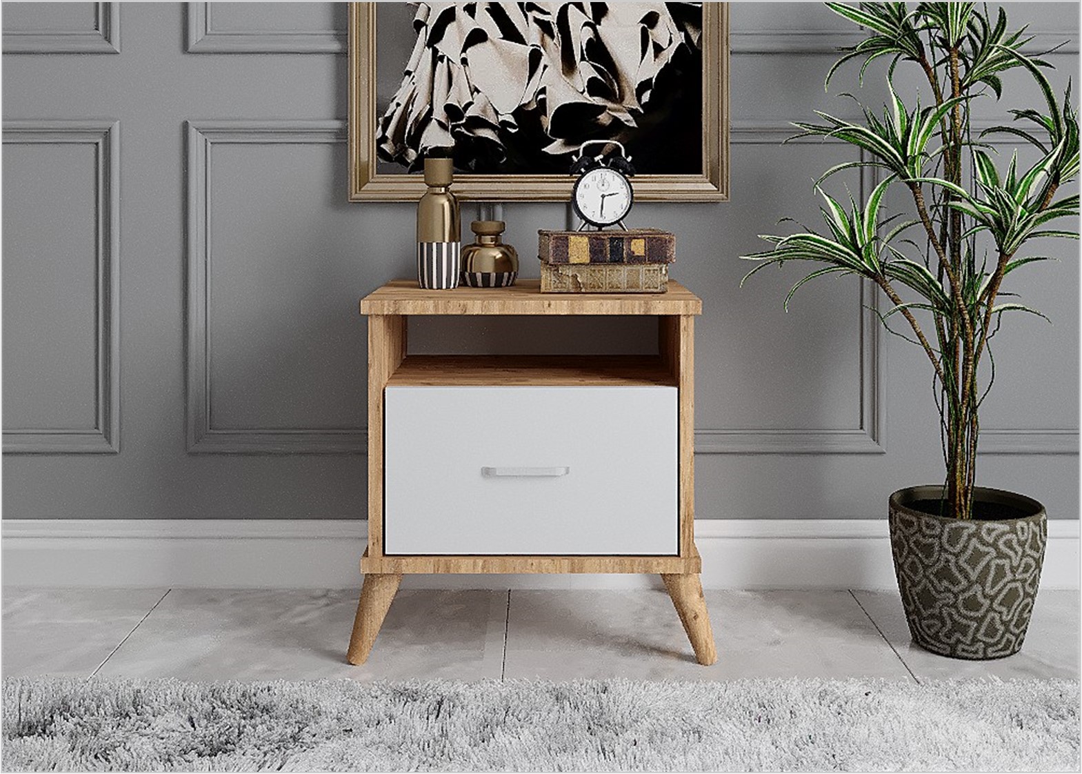 Trend Komodin - Meşe&Beyaz - K.T-8