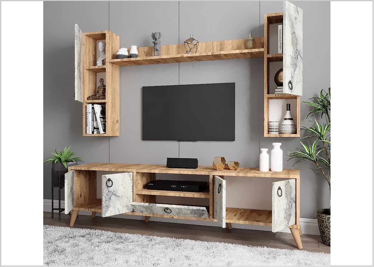 Trend Tv Ünitesi - Çam&Beyaz Mermer - T.K.T.-11