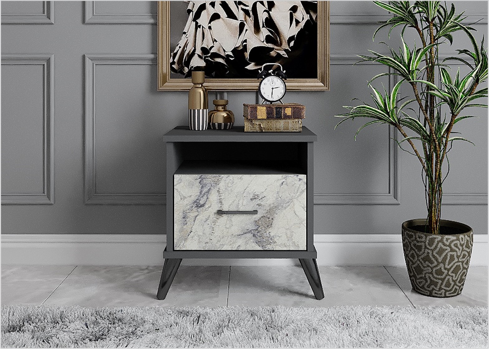 Eko Komodin - Füme&Beyaz Mermer - K.E-11