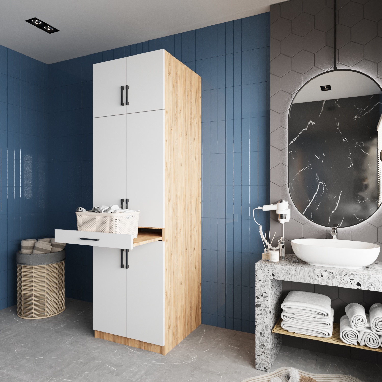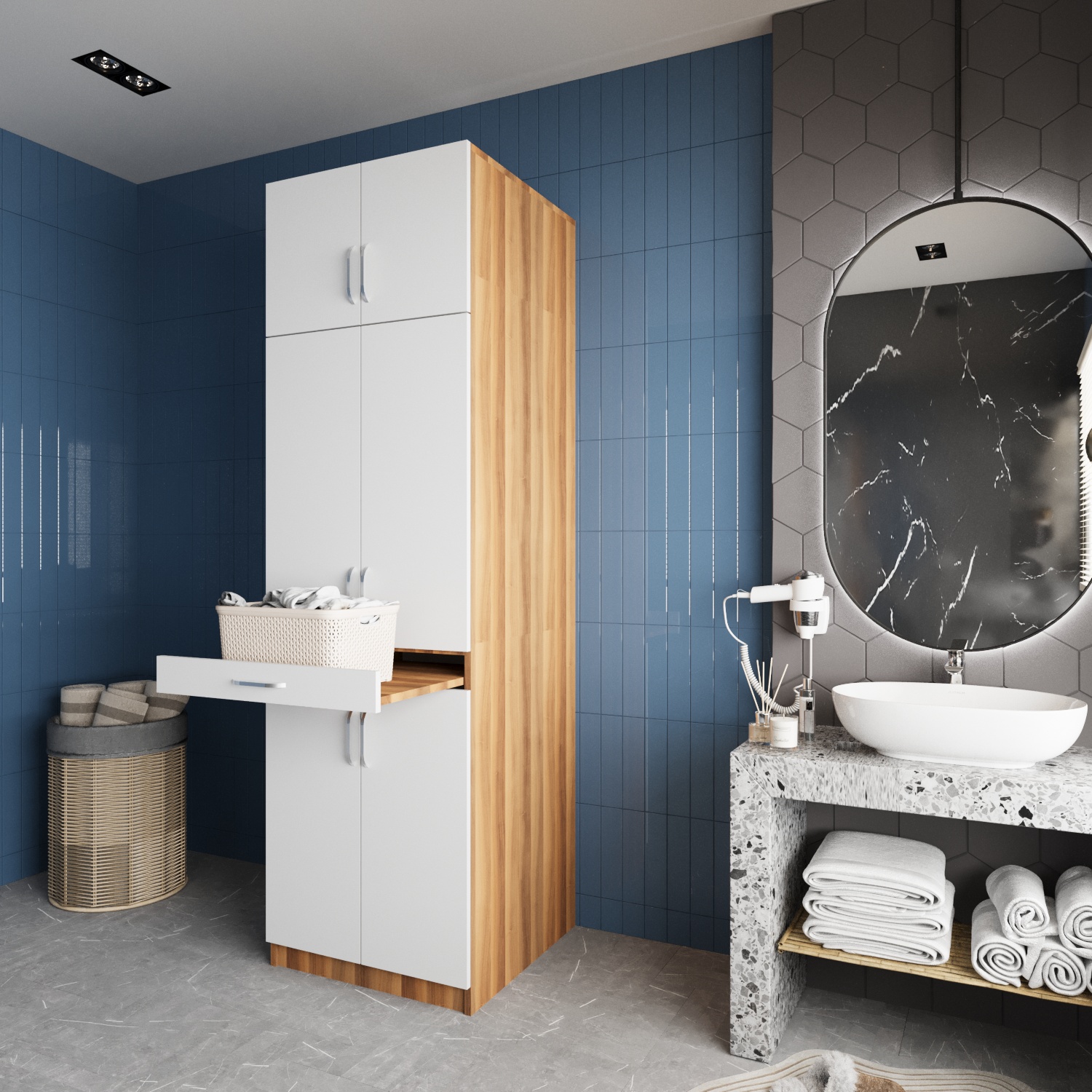 Süper Raflı Çekmemceli Çamaşır ve Kurutma Makinesi Dolabı - B.S.C.K.R-4