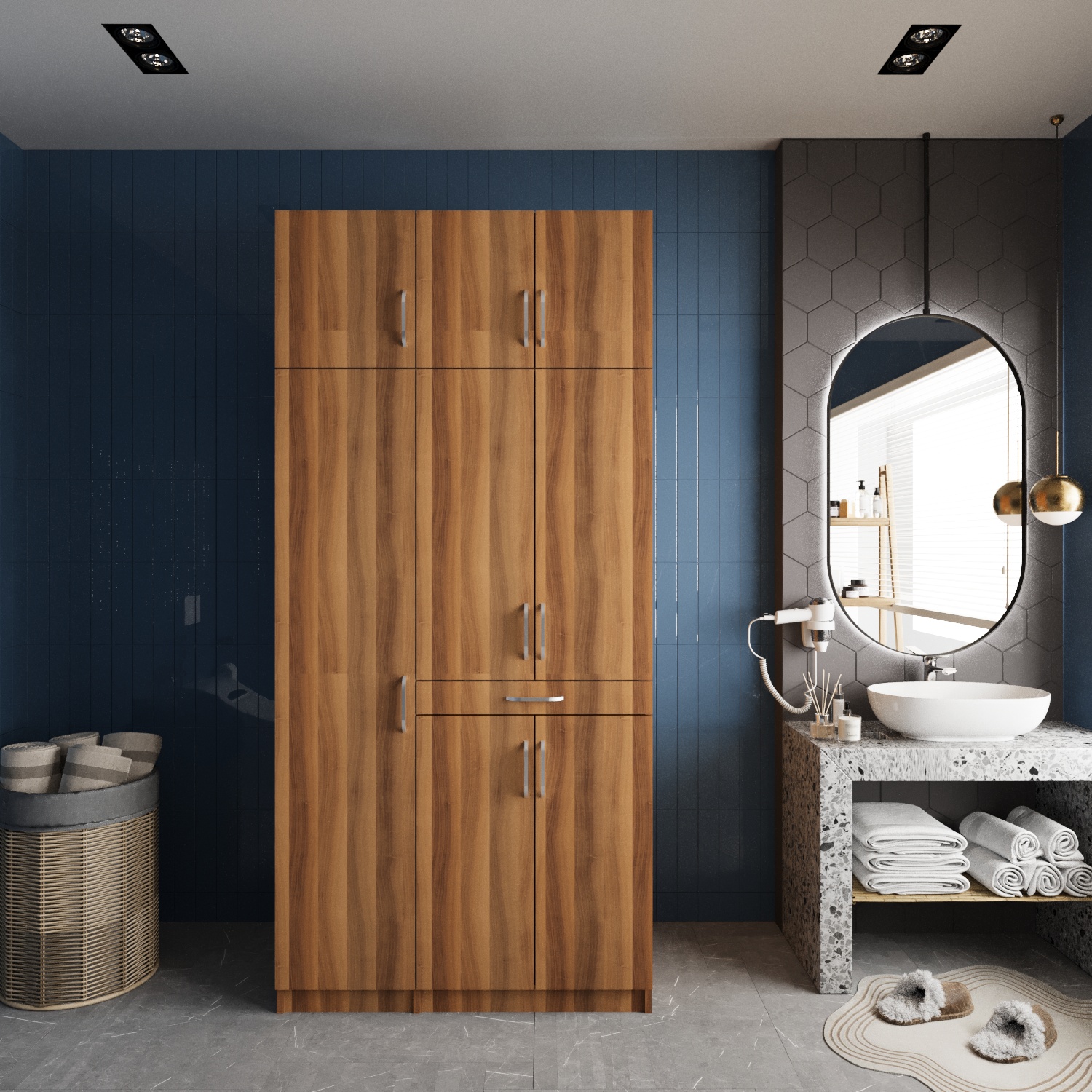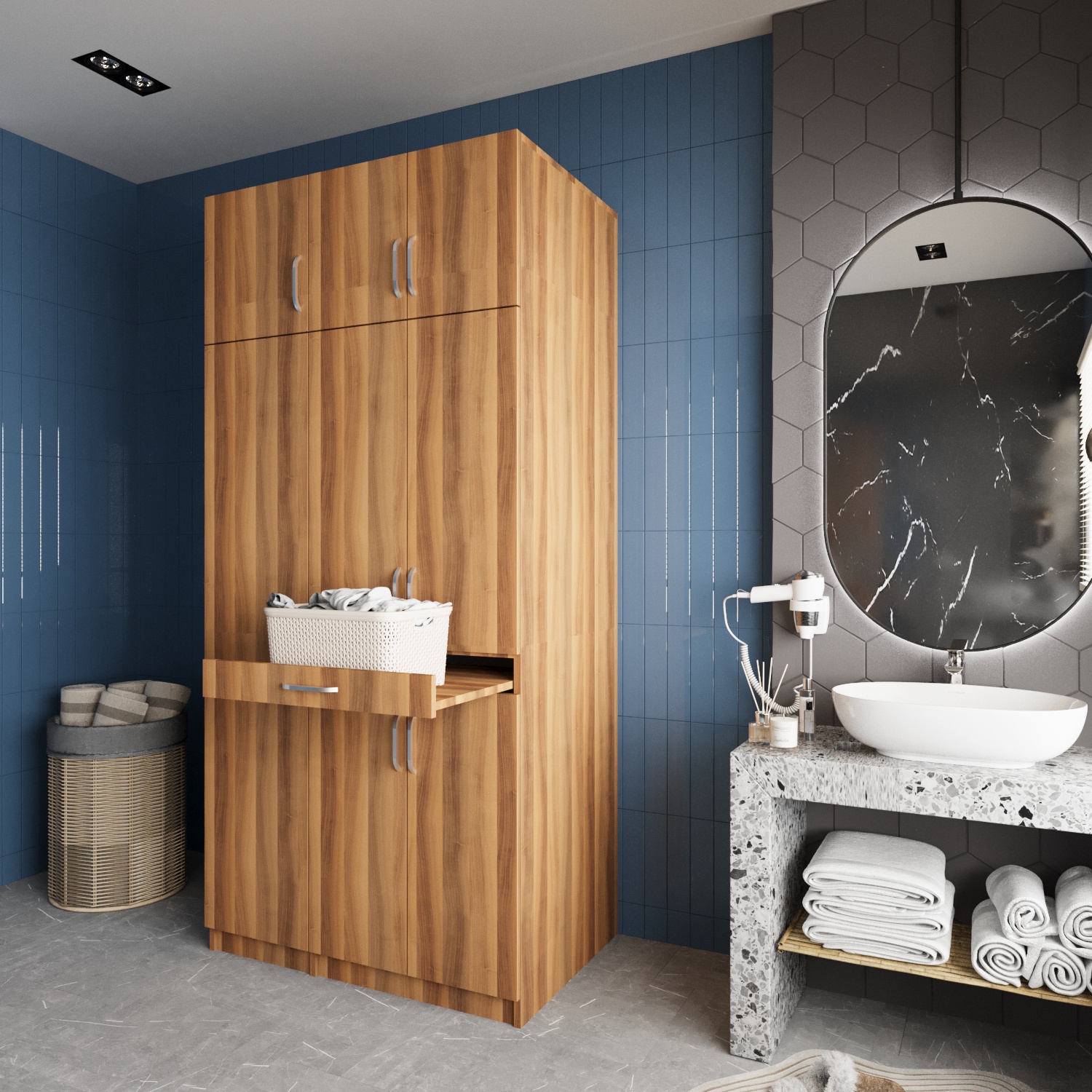 Zirve Raflı Çekmeceli Çamaşır ve Kurutma Makinesi Dolabı Ceviz - B.U.Z.-5