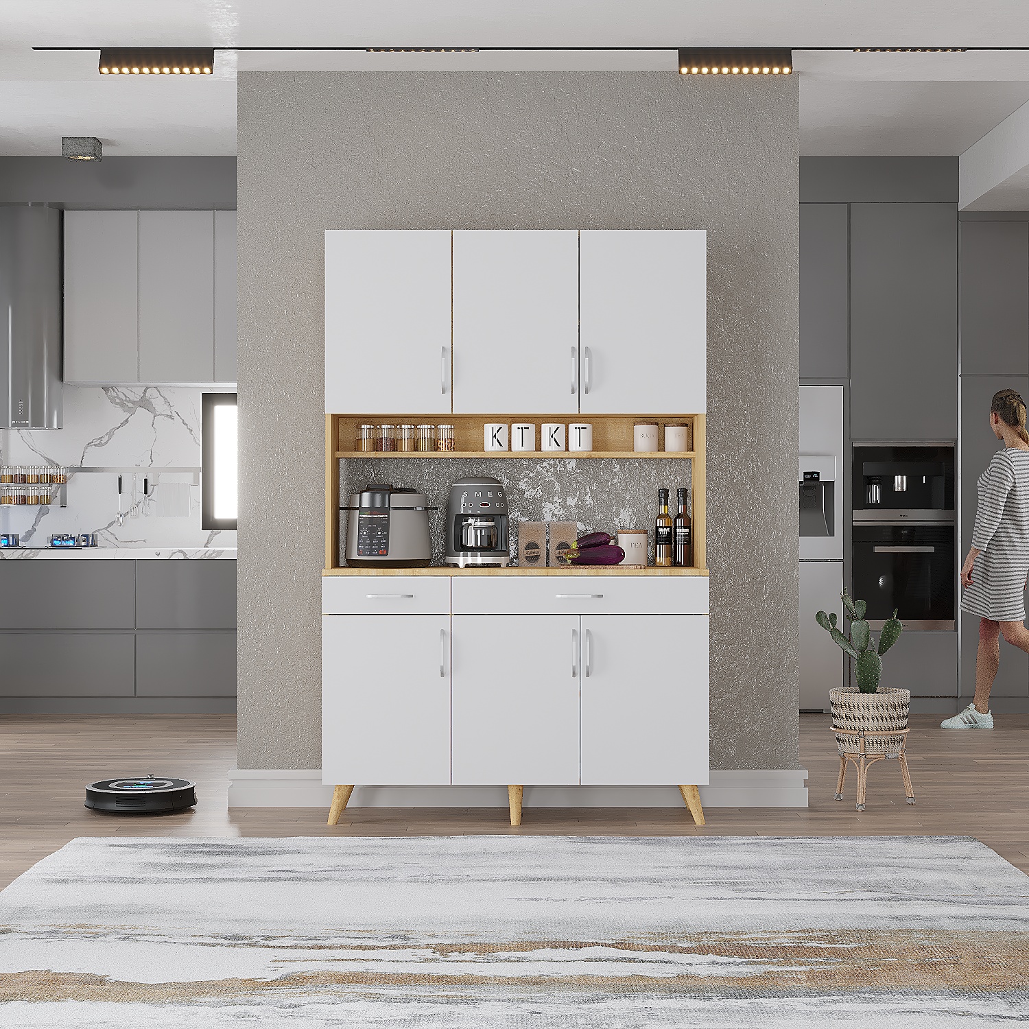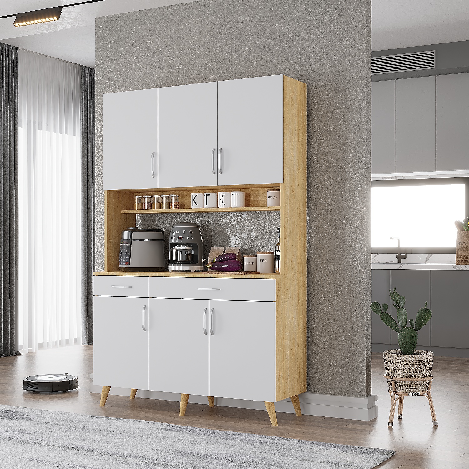 Harika Çok Amaçlı Mutfak Dolabı Kahve Köşesi Meşe&Beyaz - M.U.H.-8