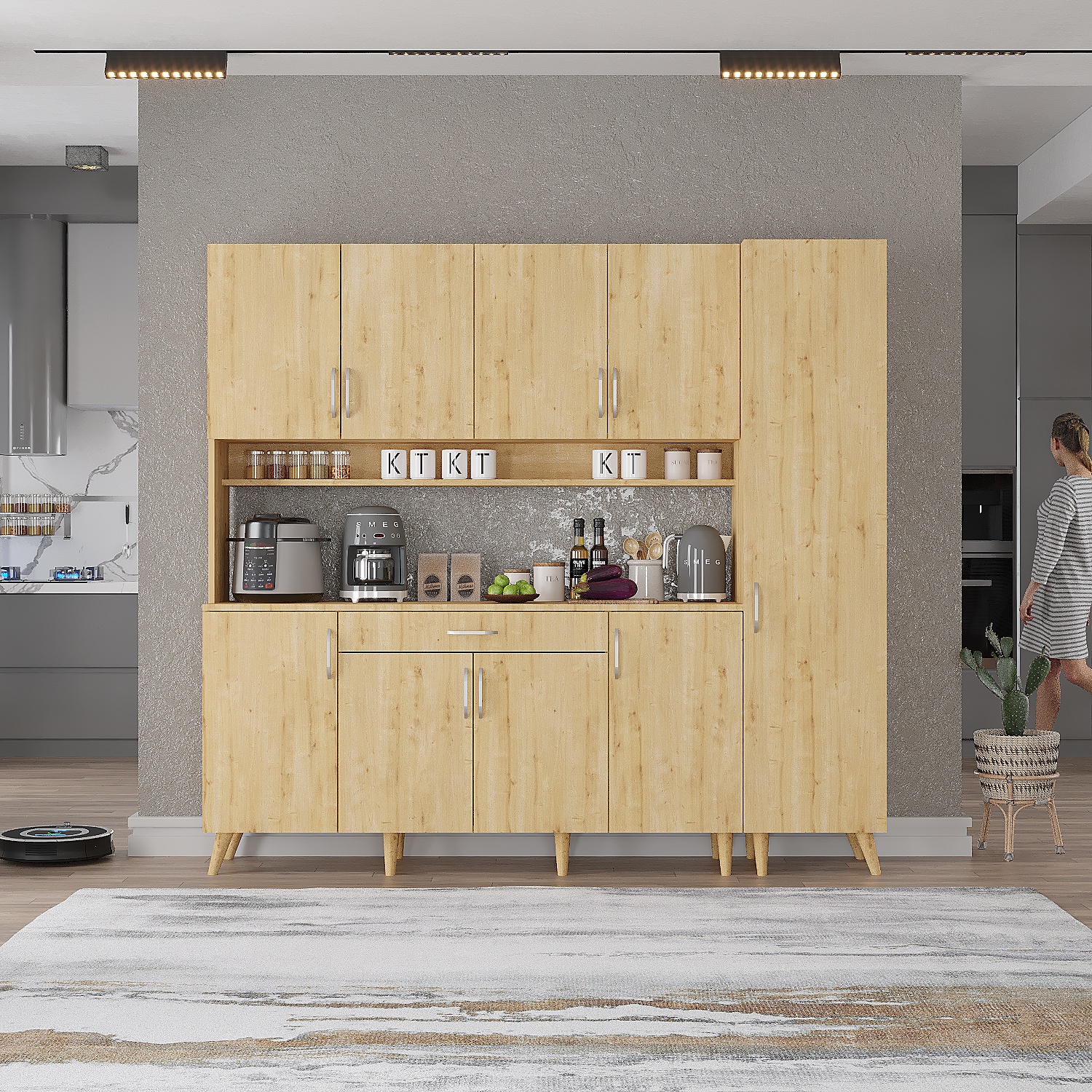 Işıltı Çok Amaçlı Mutfak Dolabı Kahve Köşesi Meşe - M.B.I.-4