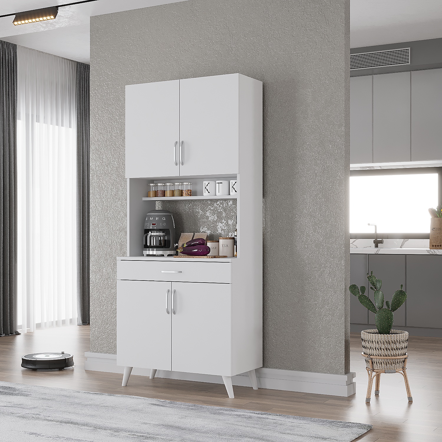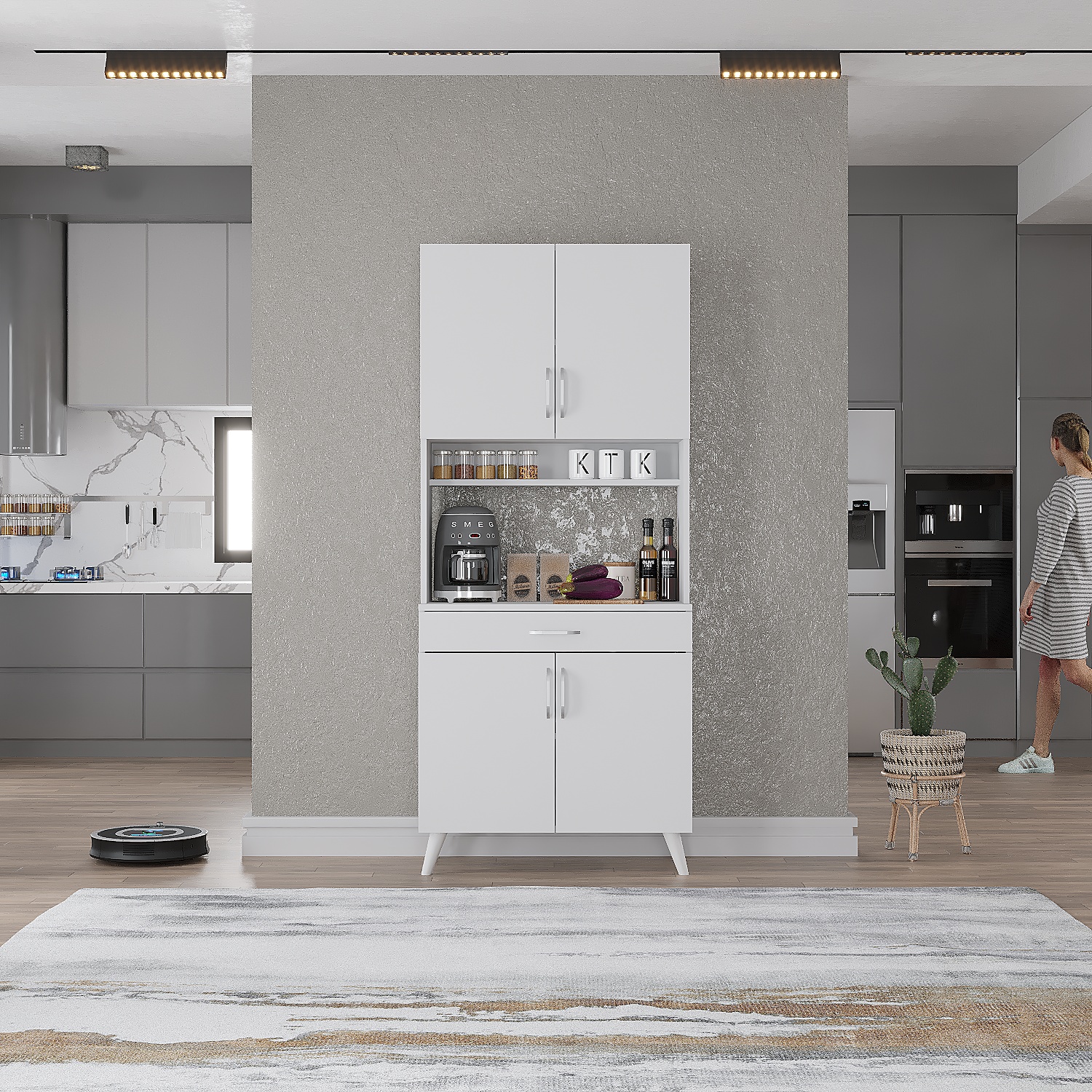 Life Çok Amaçlı Mutfak Dolabı Kahve Köşesi Beyaz - M.I.L.-1