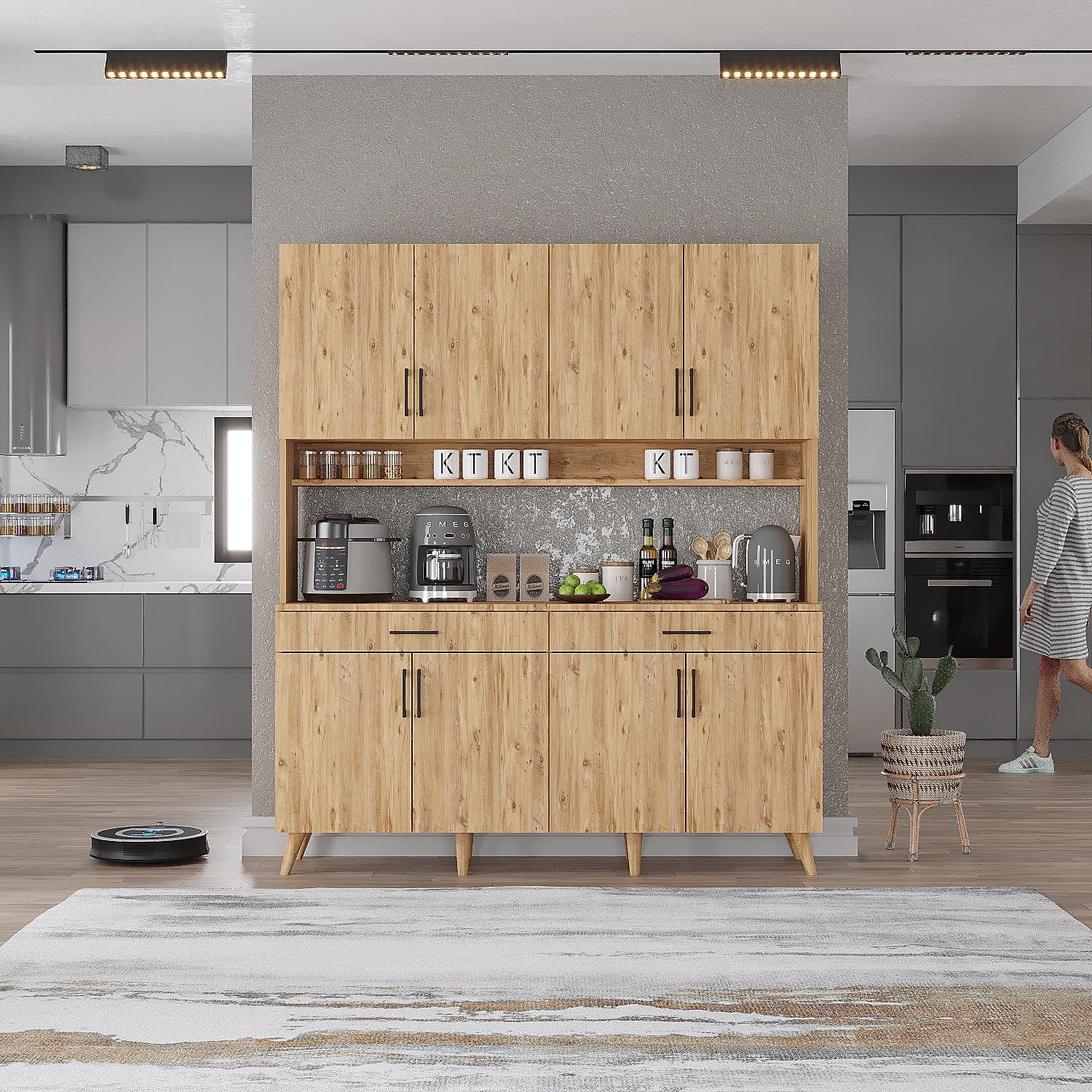 Mükemmel Çok Amaçlı Mutfak Dolabı Kahve Köşesi Çam - M.D.M.-3