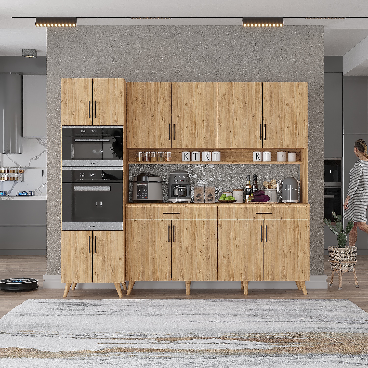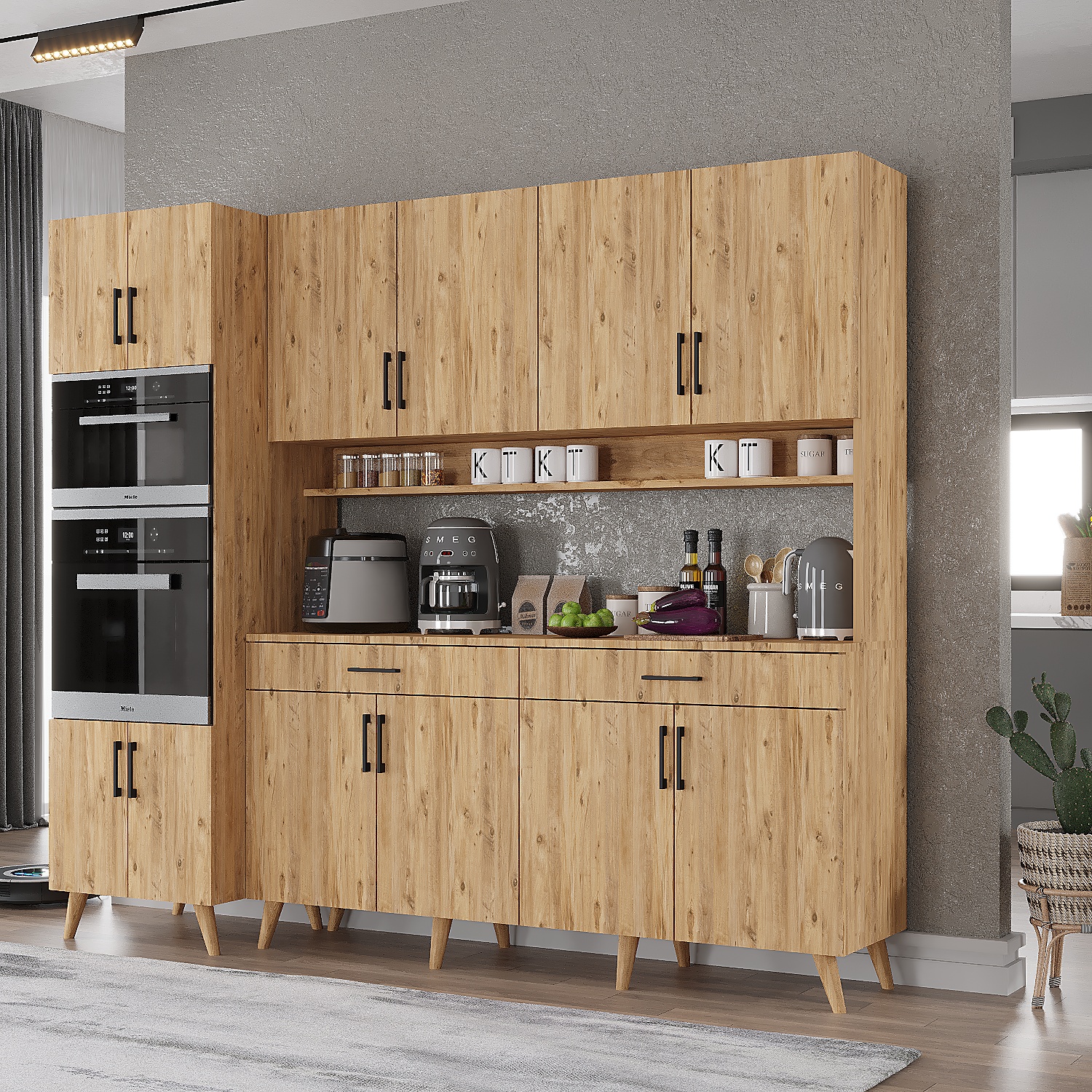 Süper Çok Amaçlı Mutfak Dolabı Kahve Köşesi Çam - M.A.S-3