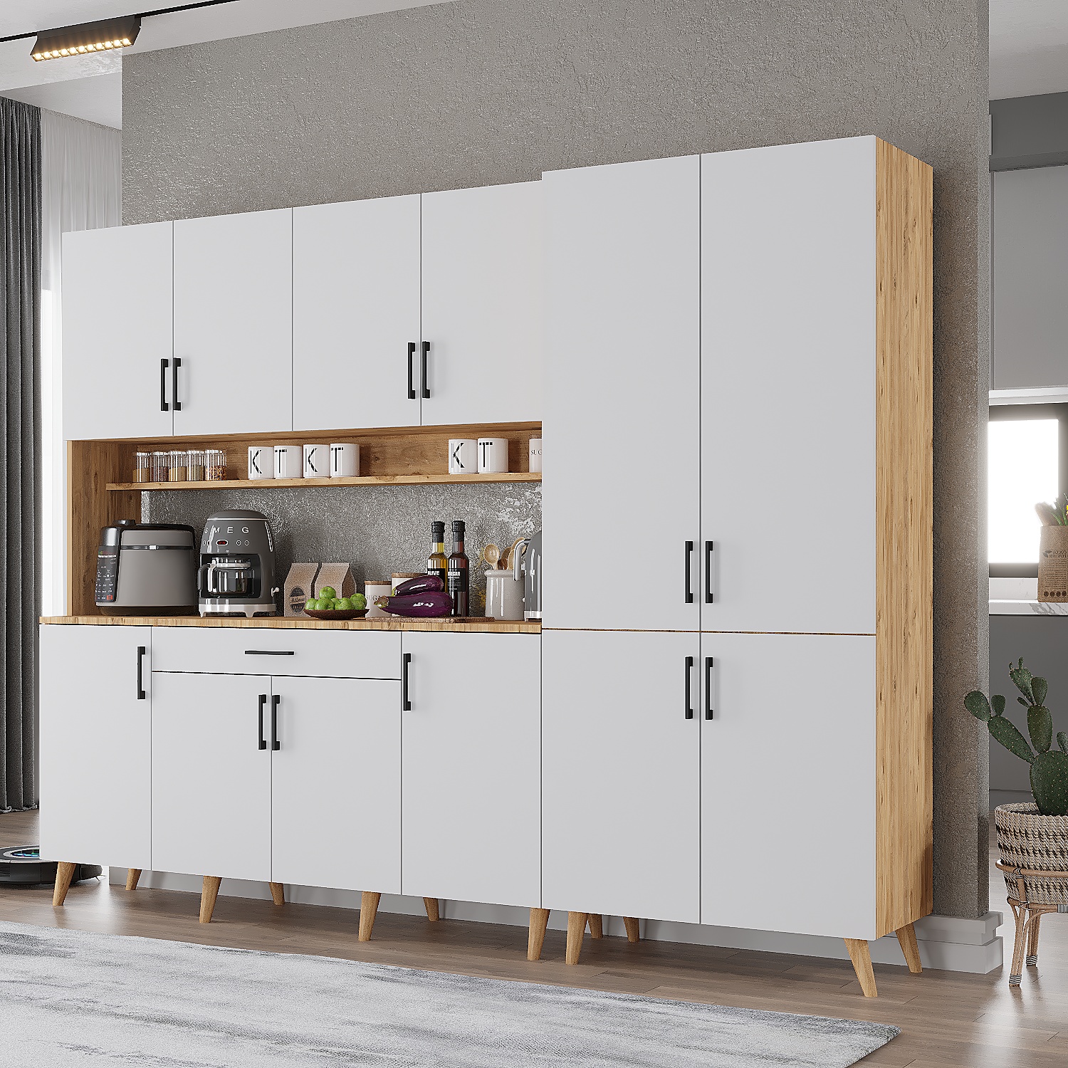 Yıldız Çok Amaçlı Mutfak Dolabı Kahve Köşesi Çam&Beyaz - M.A.Y.-7