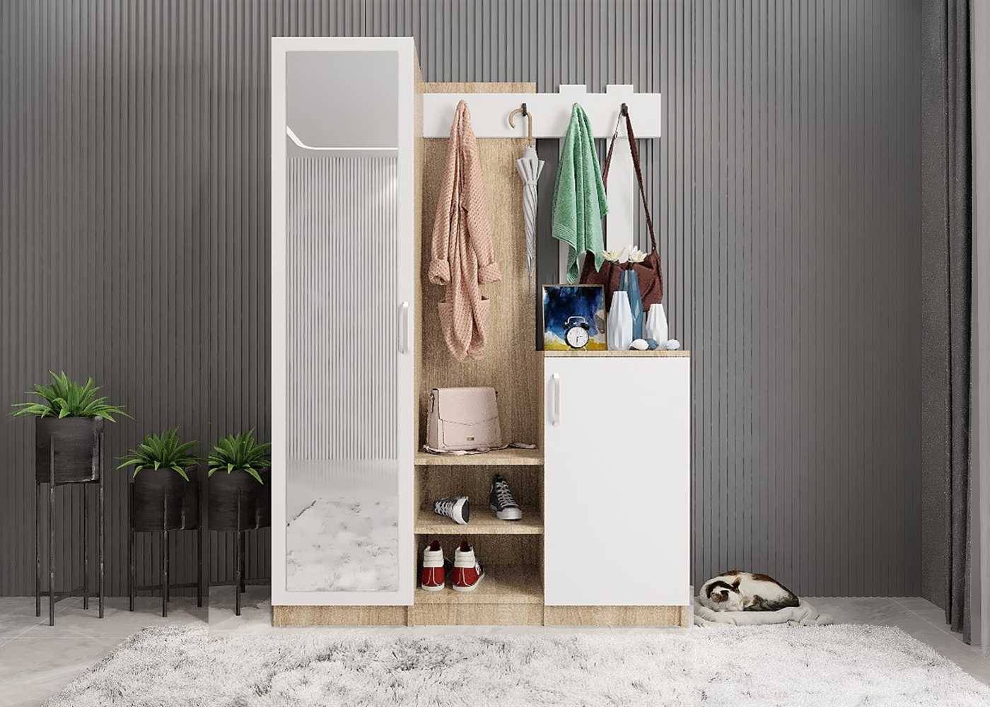 Bar Portmanto - Meşe&Beyaz - P.U.B.-8