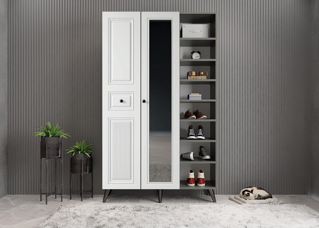 Membran Bar 3 Kapaklı Portmanto - Füme & Beyaz - P.Ü.M.B-2