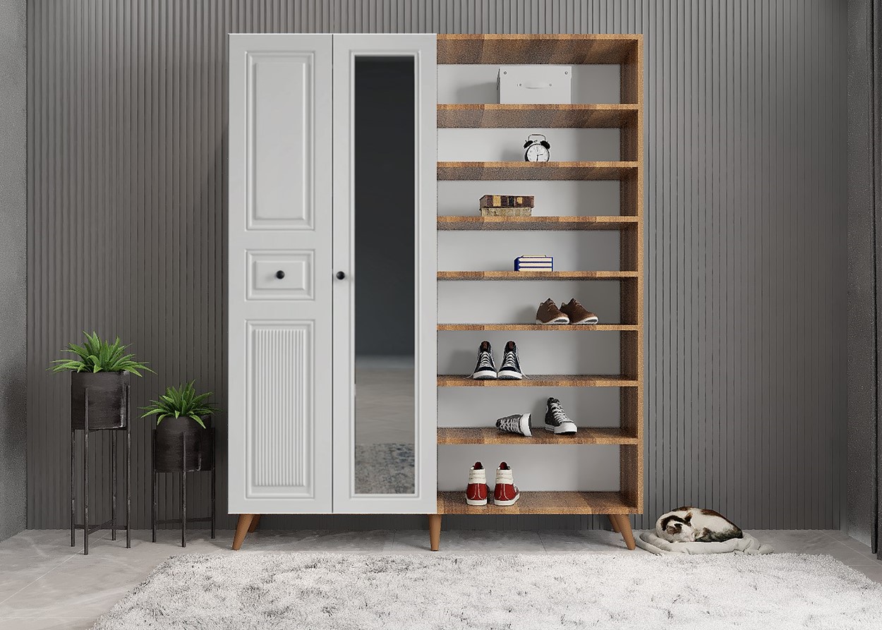 Membran Bar 4 Kapaklı Portmanto - Ceviz & Beyaz - P.D.M.B-3