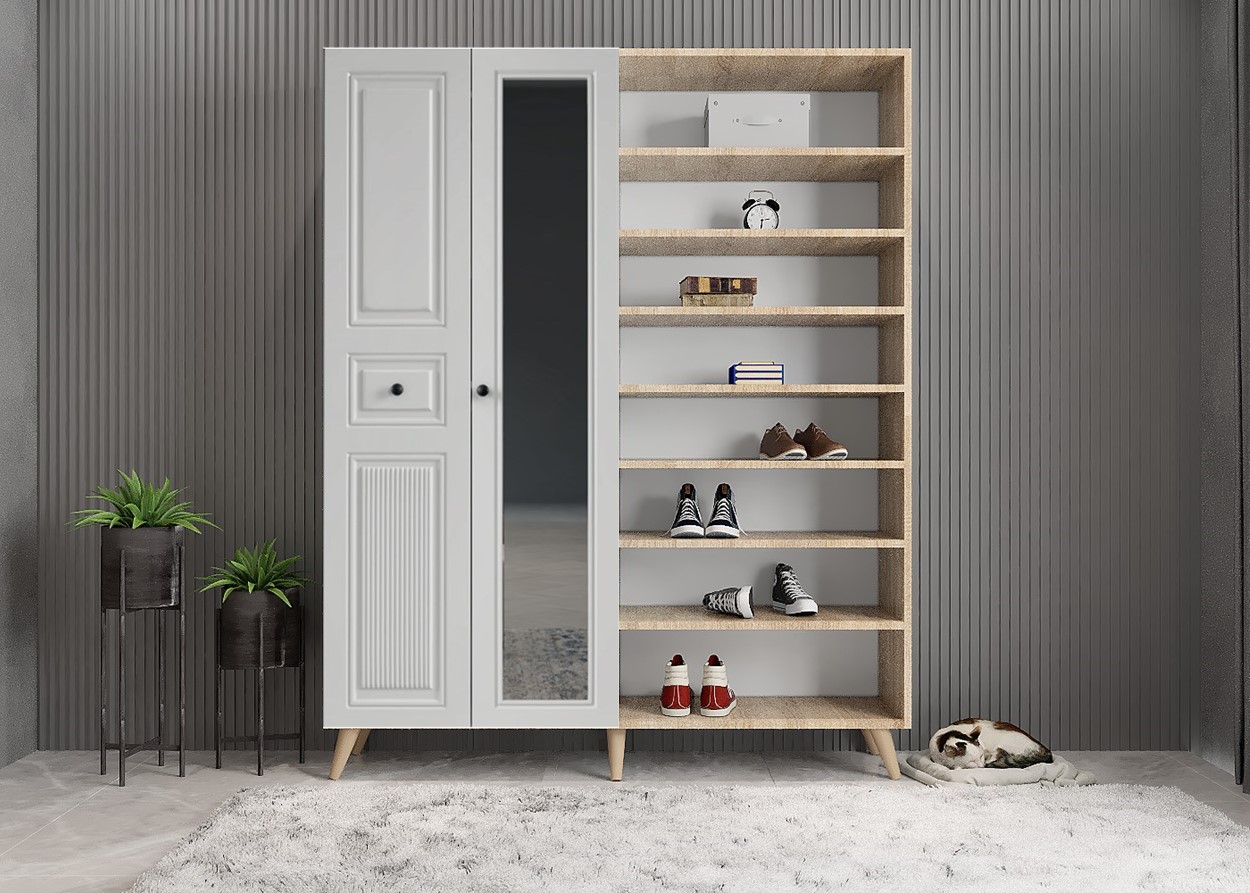 Membran Bar 4 Kapaklı Portmanto - Meşe & Beyaz - P.D.M.B-5