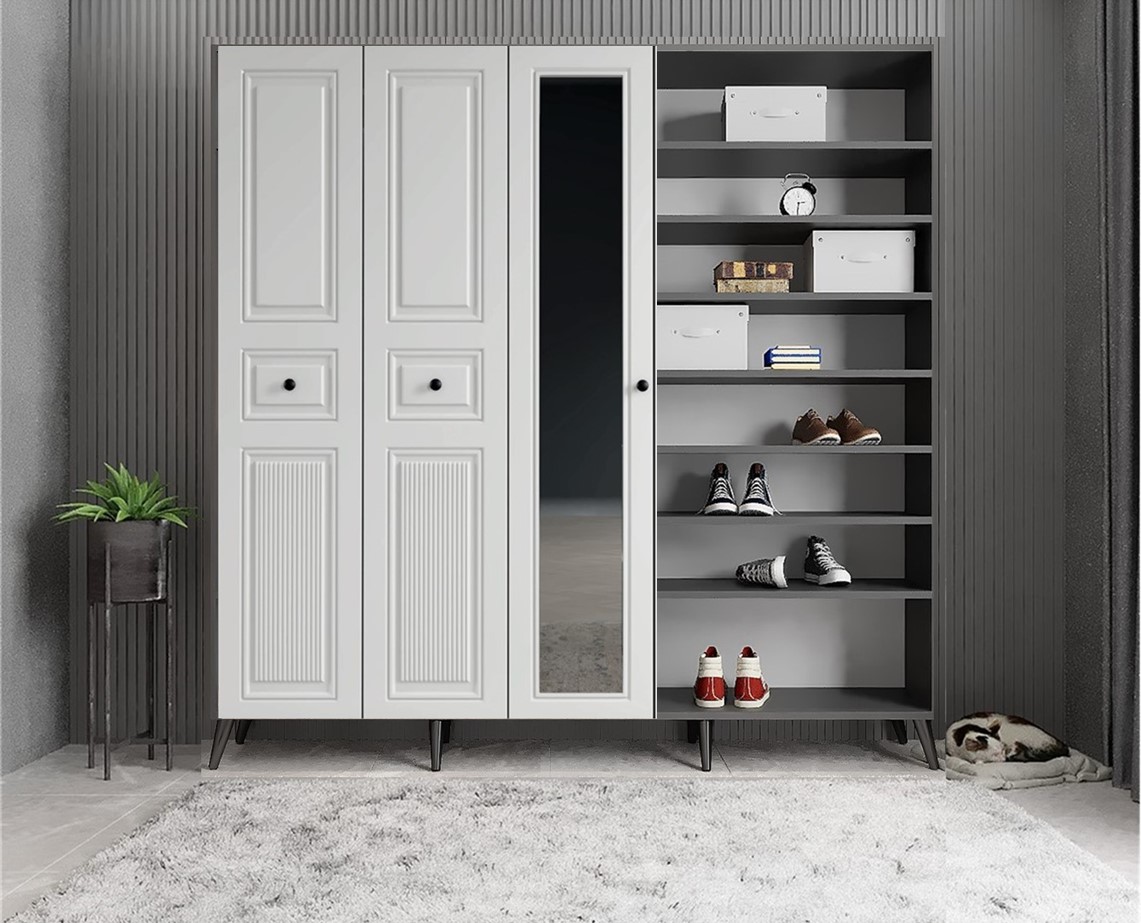 Membran Bar 5 Kapaklı Portmanto - Füme & Beyaz - P.B.M.B-2