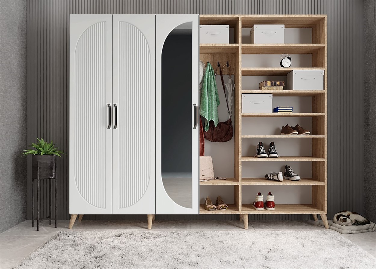 Membran Harika 6 Kapaklı Portmanto - Meşe & Beyaz - P.A.M.H-4