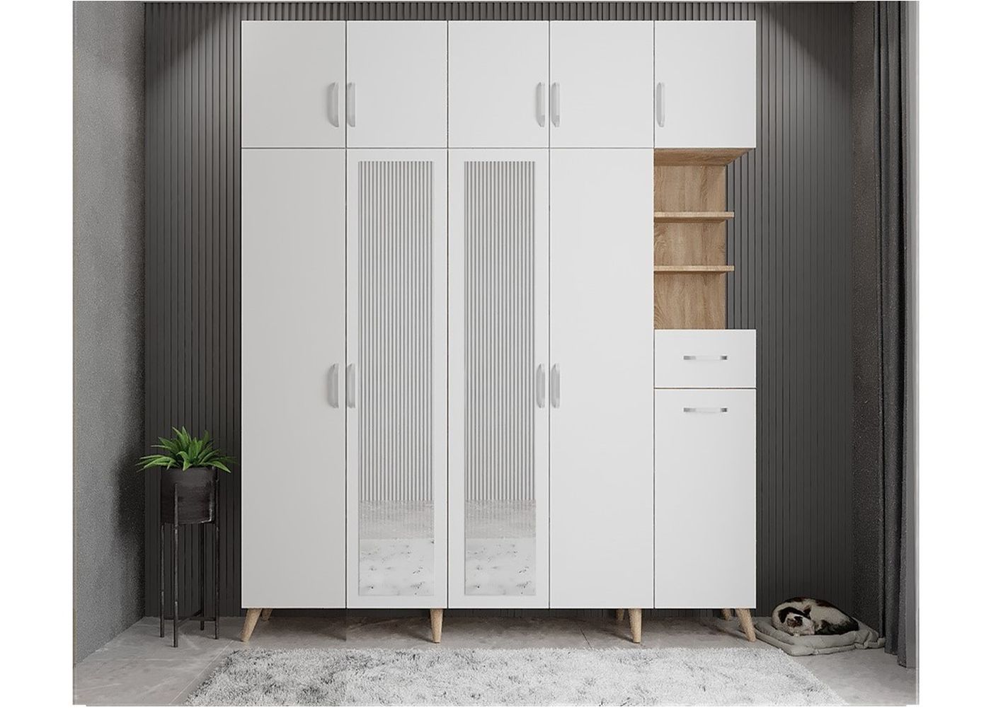Trend Portmanto - Meşe&Beyaz - P.B.T-8
