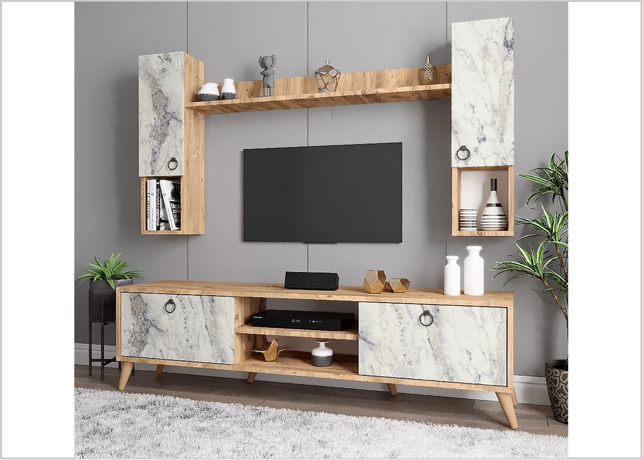 Bar Tv Ünitesi - Çam&Beyaz Mermer - T.K.B.-11