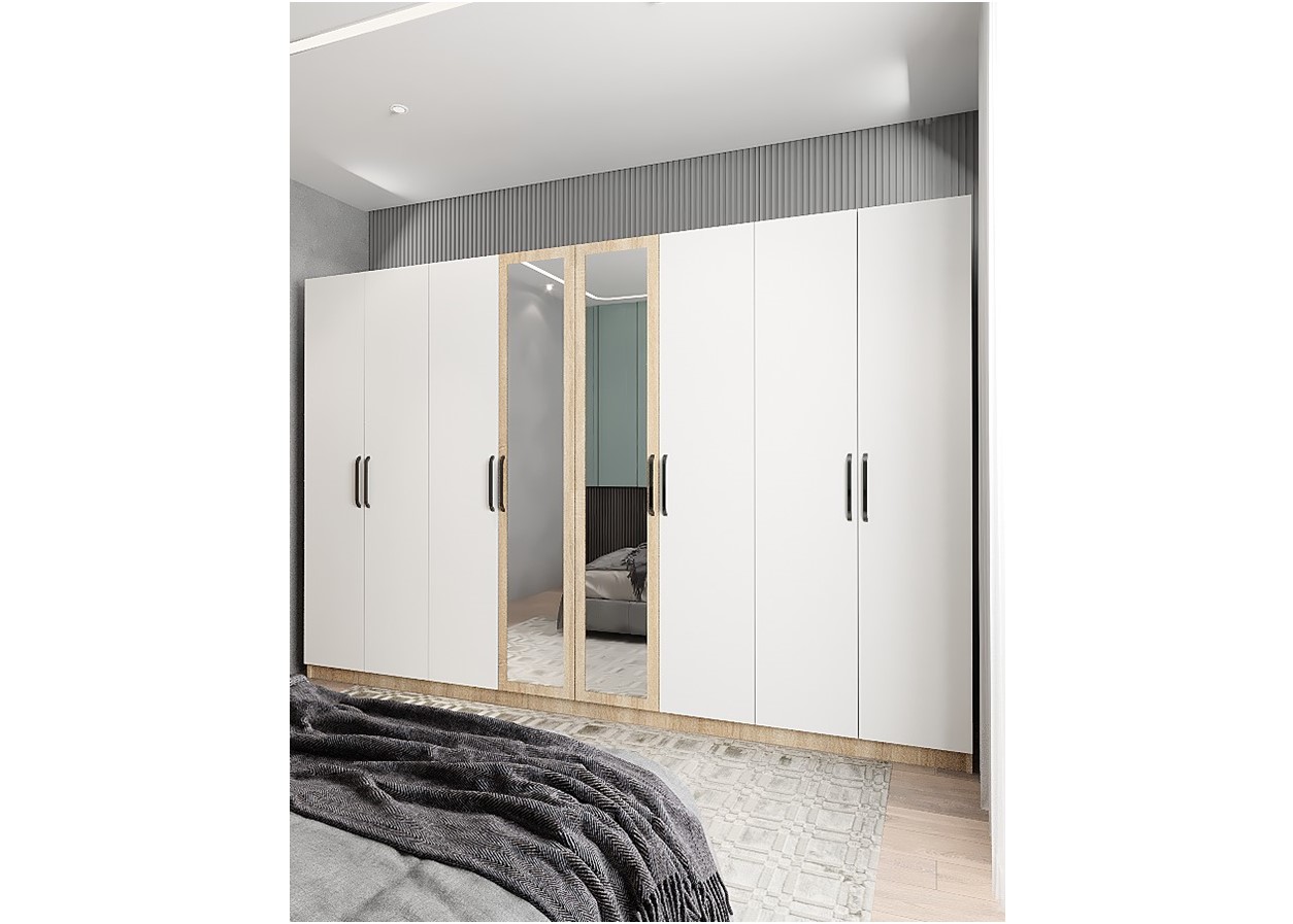 Bar 8 Kapaklı Gardırop - Meşe&Beyaz - G.S.B.-9