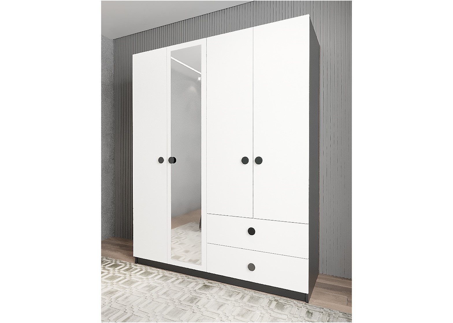 Harika 4 Kapaklı Gardırop - Füme&Beyaz - G.D.H.-6