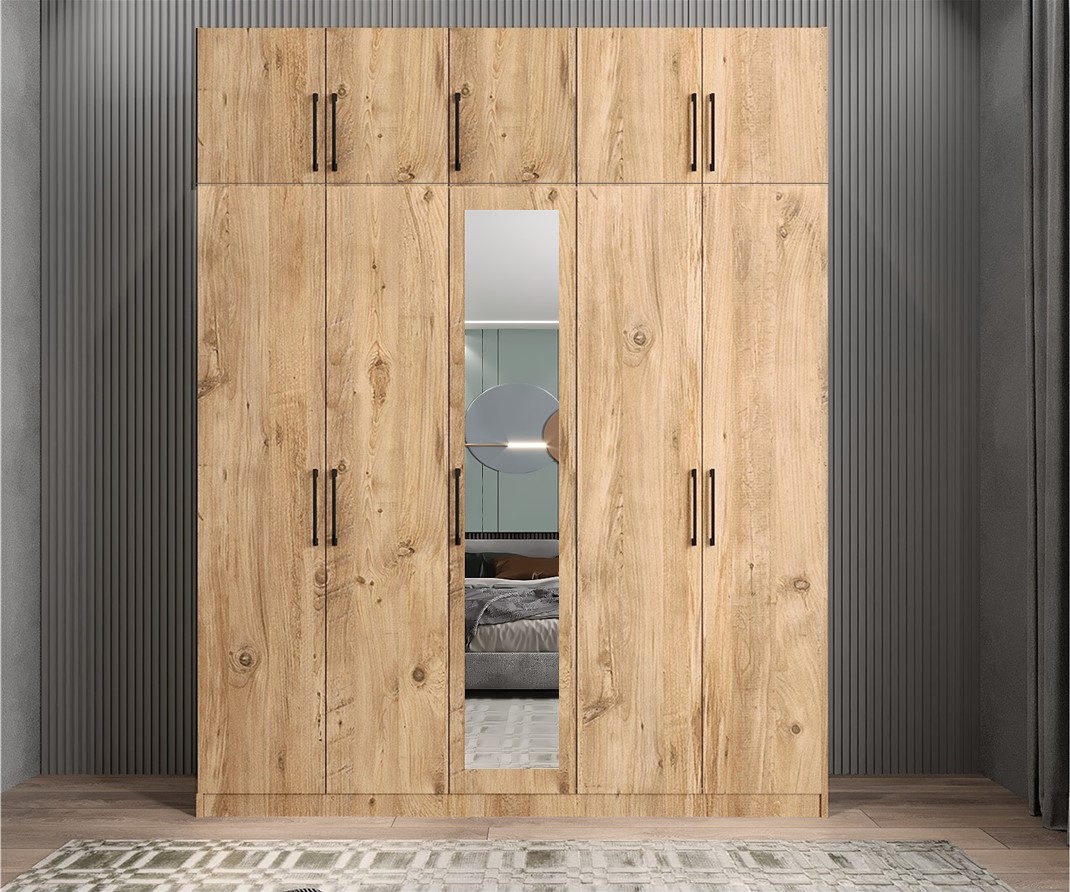 Harika 5 Kapaklı Gardırop - Meşe - G.B.H-4