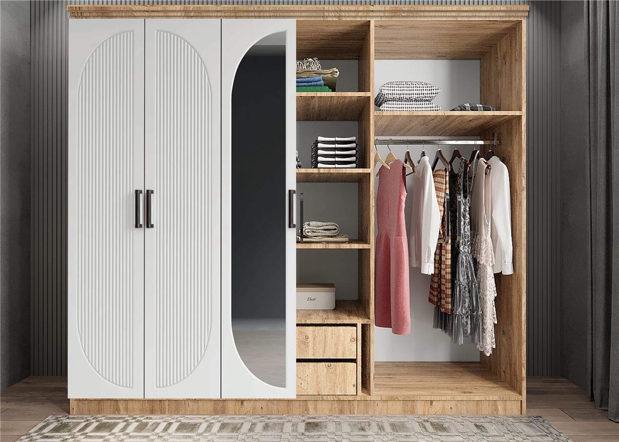 Membran Harika 6 Kapaklı Gardırop - Çam & Beyaz - G.A.M.H-3