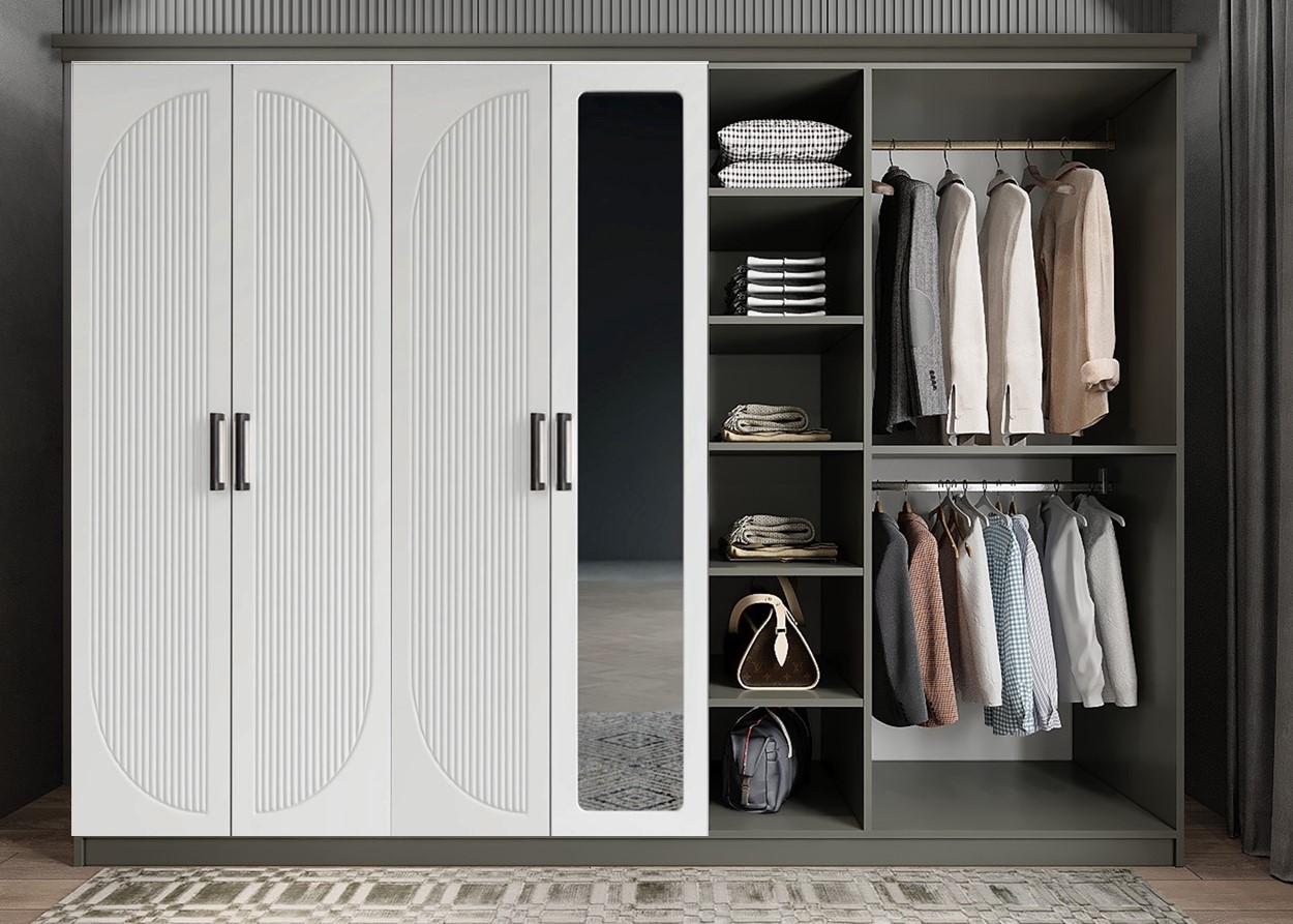 Membran Harika 7 Kapaklı Gardırop - Füme & Beyaz - G.Y.M.H-2