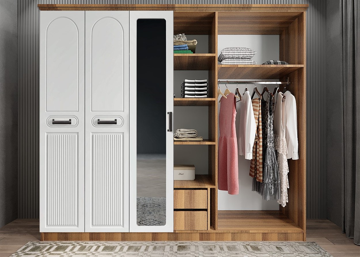 Membran Life 6 Kapaklı Gardırop - Ceviz & Beyaz - G.A.M.L-4