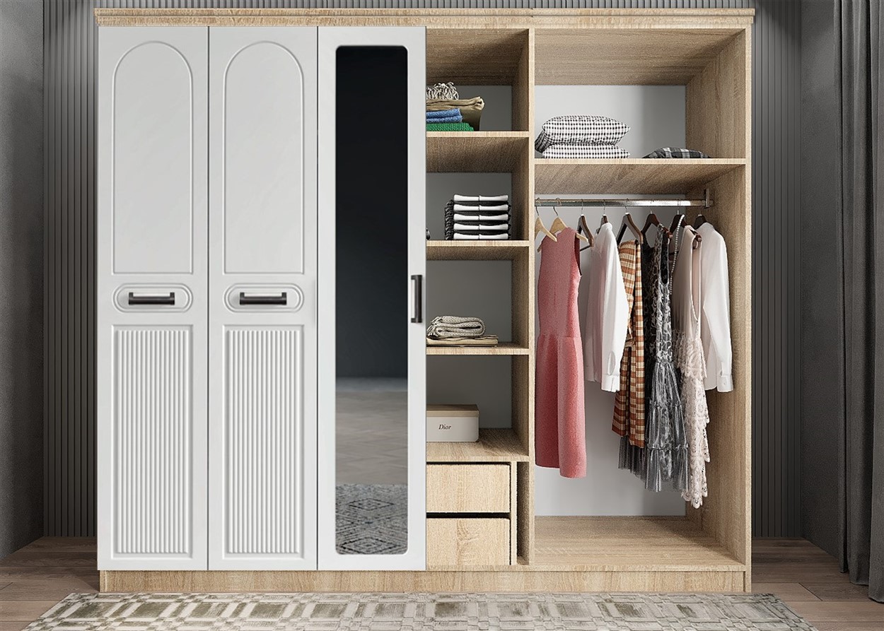 Membran Life 6 Kapaklı Gardırop - Meşe & Beyaz - G.A.M.L-5